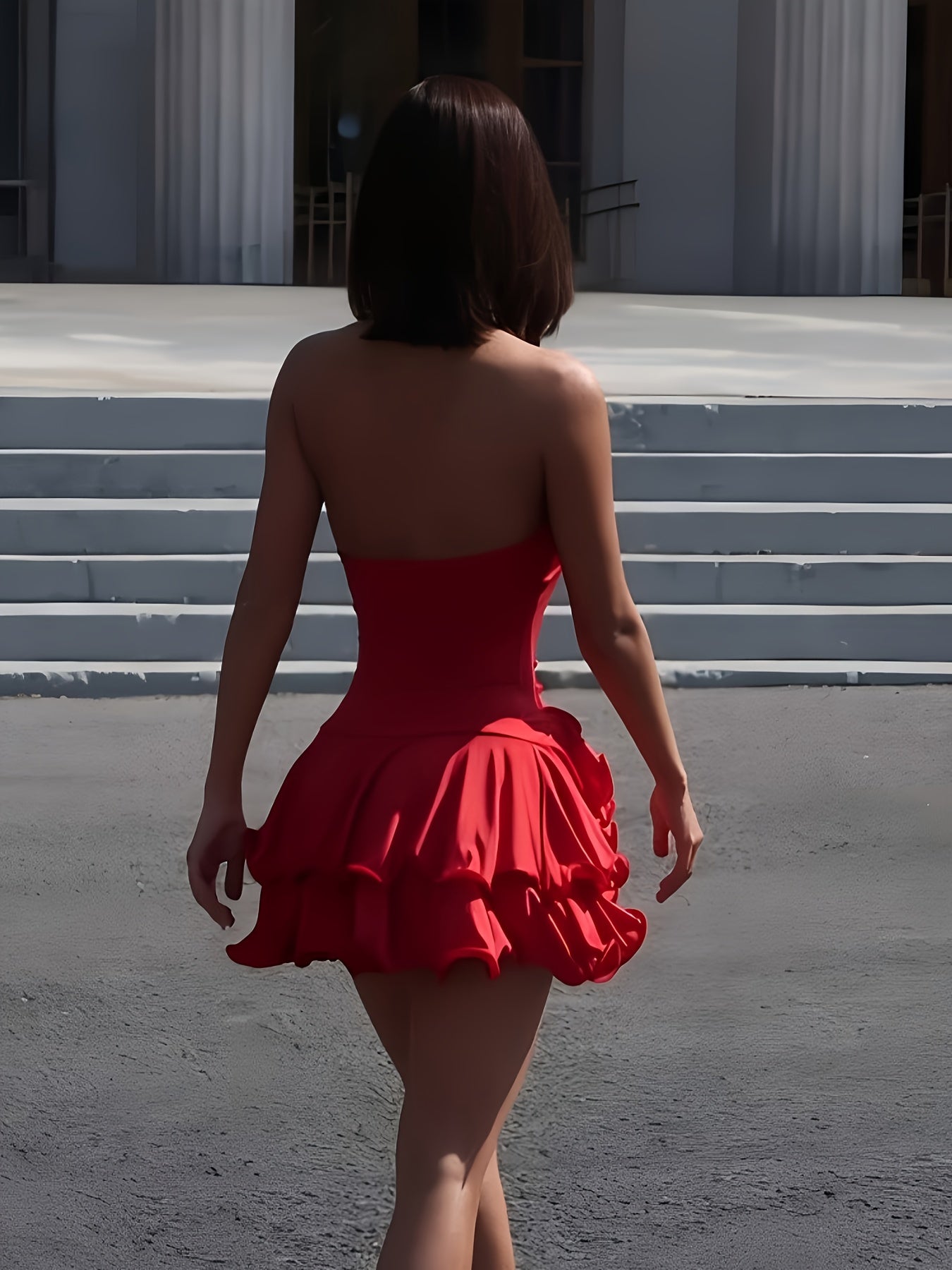 Vénusienne – Mini robe fluide col V, sans manche, silhouette divine.